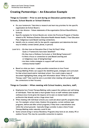 - Things to Consider ~ Prior to and during an Education partnership with Schools, School Boards or School Districts